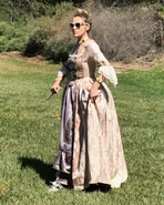 - This was done in secret on location during a shoot day. Aubrey was asked to be involved as, in addition to sourcing the 1700s Marie Antoinette style dress, she would be able to fit herself in private without any other cast members knowing.[4]